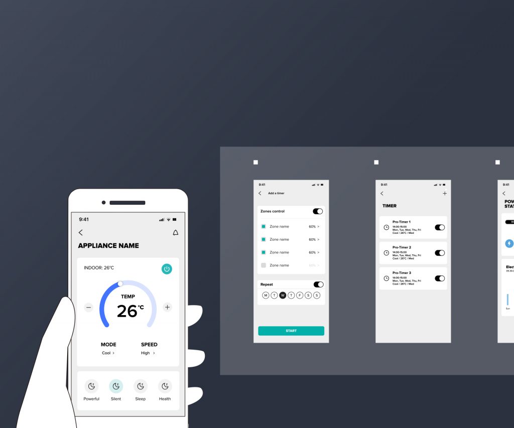 Remotely control the air conditioner through the mobile phone APP and a Wi-Fi connection.